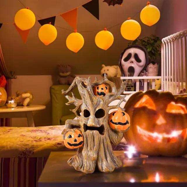 Halloween Tree Face Ornaments with LED Pumpkins Resin Indoor Outdoor Decor